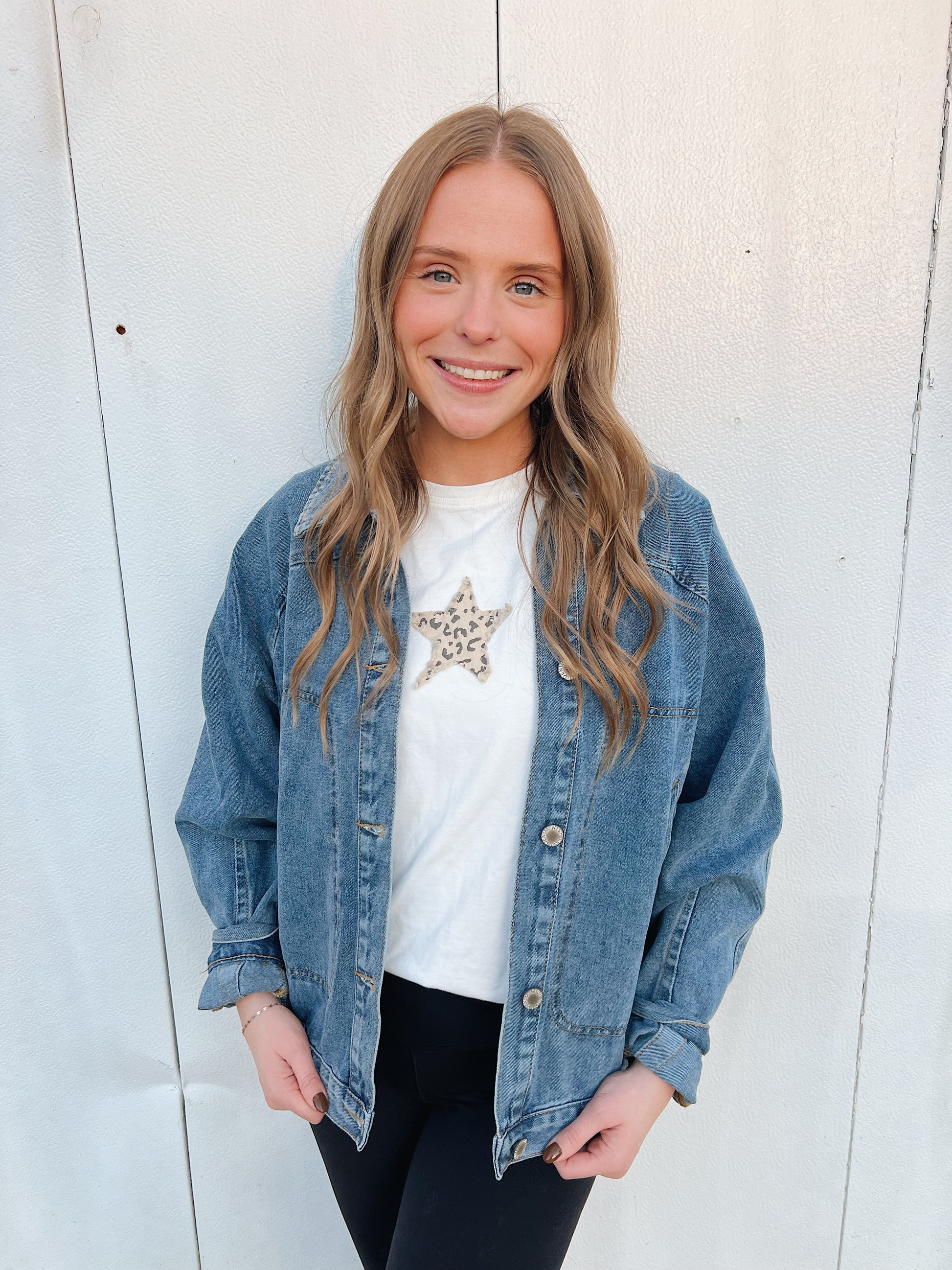A timeless layer for every season, this denim button-up jacket features functional buttons, pockets, and a relaxed, comfortable fit. The perfect throw-on piece for casual days, weekend outings, or layering over your favorite basics.